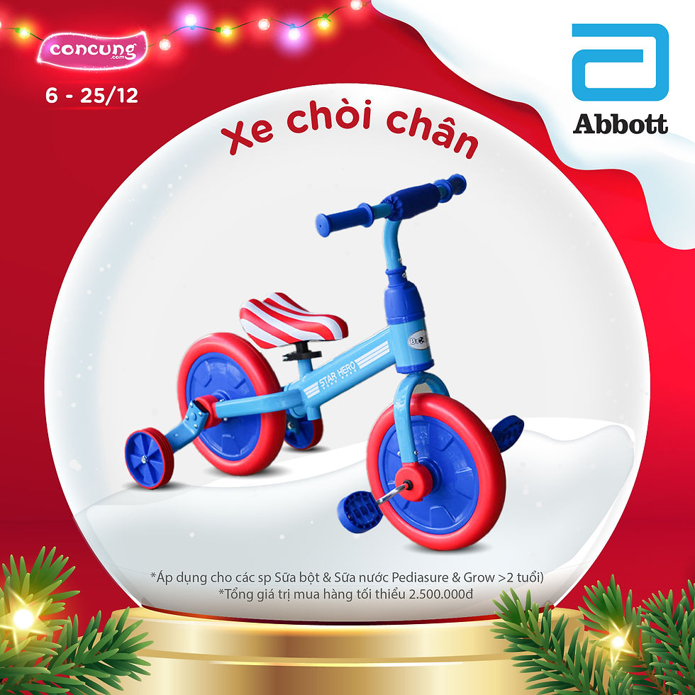 Từ 4/12 – 25/12, Top 10 ba mẹ mua nhiều nhất mỗi ngày nhận ngay quà đỉnh từ nhãn hàng đồng hành: 👉 Sữa #Enfa: Xe đạp trẻ em 👉 Sữa #Nestle: Bộ nệm thú bông 👉 Sữa #Abbott (Từ 6/12): Xe chòi chân 👉 Tã #Huggies: Xe điện 3 bánh 👉 Tã #Bobby: Xe chòi chân Bobby 👉 Tã #Moony: Cầu trượt đa năng 👉 Tã #Genki: Bập bênh ngựa hoặc Vali kéo chòi chân 👉 Tã #Pampers: Xe chòi chân 👉 Tã #Merries: Lều thỏ 👉 Tã #Goo.n: Xe đạp thể thao trẻ em