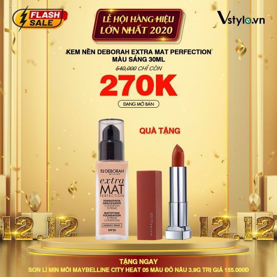 🌟✅Kem Nền Deborah Extra Mat Perfection Màu Sáng 30ml. SALE MẠNH – GIÁ GỐC 540,000 đ CHỈ CÒN 270,000 đ🎁🎁QUÀ TẶNG: Son Lì Mịn Môi Maybelline City Heat 05 Màu Đỏ Nâu 3.9g: bit.ly/vstyledotvn?/y6ozhdmk